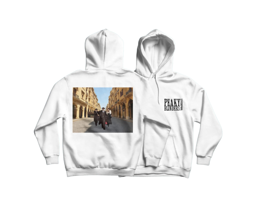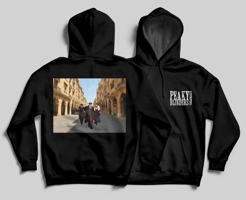 The Peaky Blinder X Downtown Hoodie features a soft, comfortable fabric with a roomy hood and front pouch pocket, showcasing a stylish design inspired by Peaky Blinders and urban downtown vibes. Its relaxed fit pairs effortlessly with jeans, joggers, or layered jackets, making it perfect for casual wear, fans of the show, or adding a sleek, edgy touch to everyday outfits.