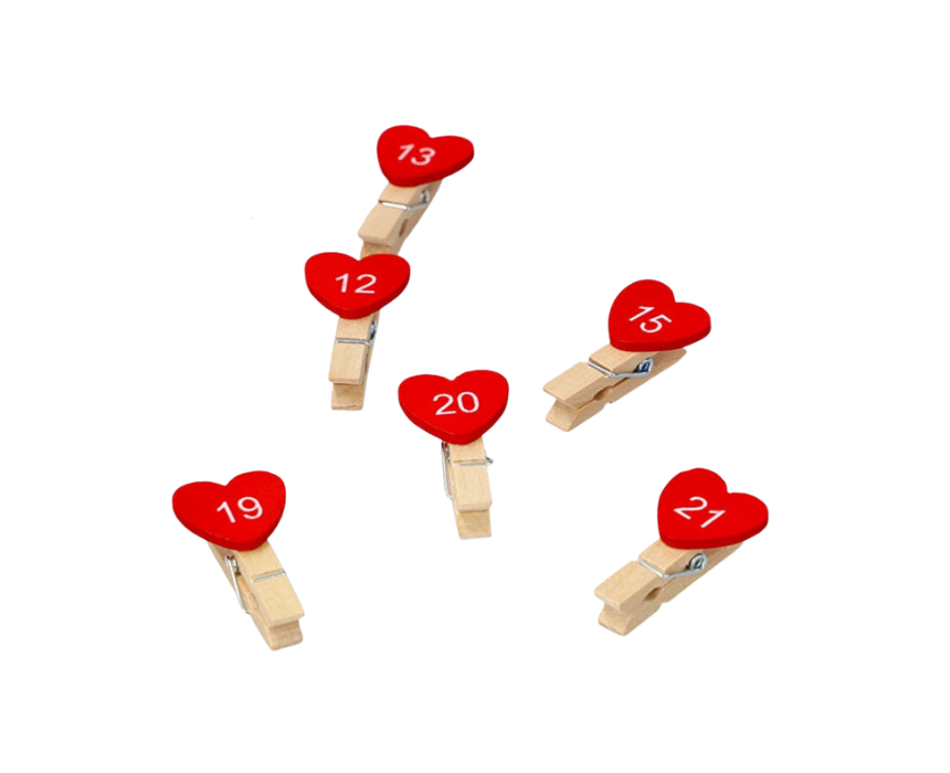 The Pegs Heart with 24 Numbers is a fun and decorative accessory perfect for crafts, countdowns, or learning activities. Featuring 24 numbered pegs in a heart shape, it is ideal for birthdays, valentines, or festive decorations. Easy to use and display, it adds a playful and charming touch to any project or event.