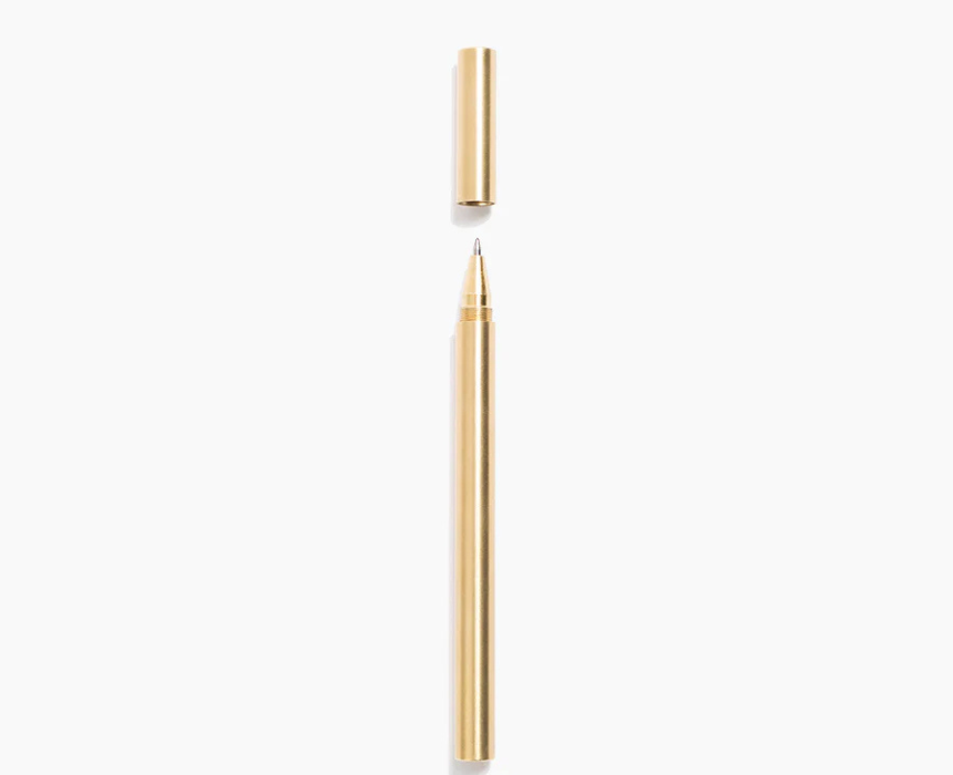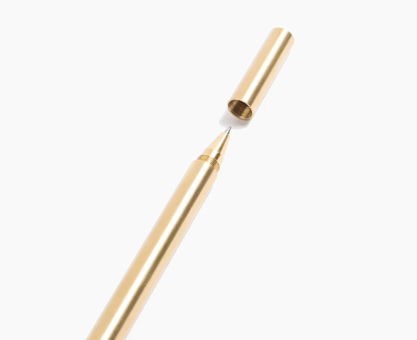 The Pen Brass features a durable brass construction with a polished finish, offering a timeless, elegant design perfect for everyday writing or gifting. Its weight and sleek profile make it comfortable to hold while adding a touch of sophistication to any desk or carry setup. Ideal for those seeking a premium, stylish pen that combines functionality with classic appeal.