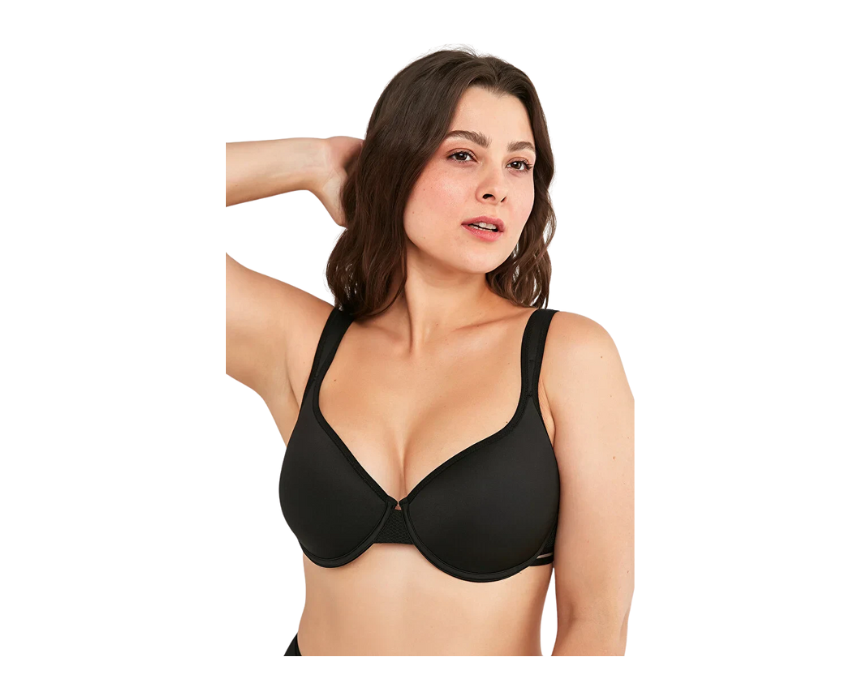 The Penti Black Breathable Padded Bra combines soft padding with breathable fabric for a comfortable, all-day fit, while providing gentle support and shaping. Its classic black color makes it versatile and discreet under clothing. Perfect to wear under dark tops, fitted shirts, or casual outfits for a smooth and airy feel.