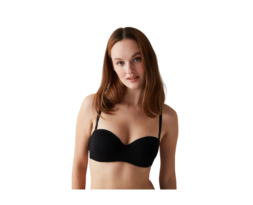 The Penti Black Straplez Bra offers a strapless design with supportive fit, ideal for off-shoulder and sleeveless outfits. Its classic black color ensures a seamless and invisible look under clothing while providing comfort and gentle shaping. Perfect to wear under dresses, tops, or formal outfits for a polished and confident finish.