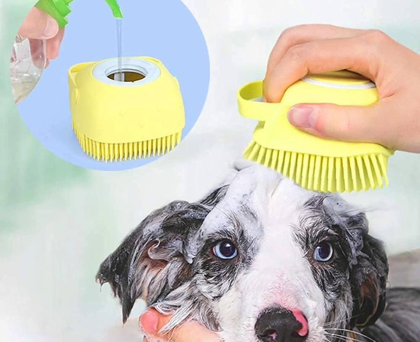 Pet Bath Brush Scrubber Shampoo Dispenser