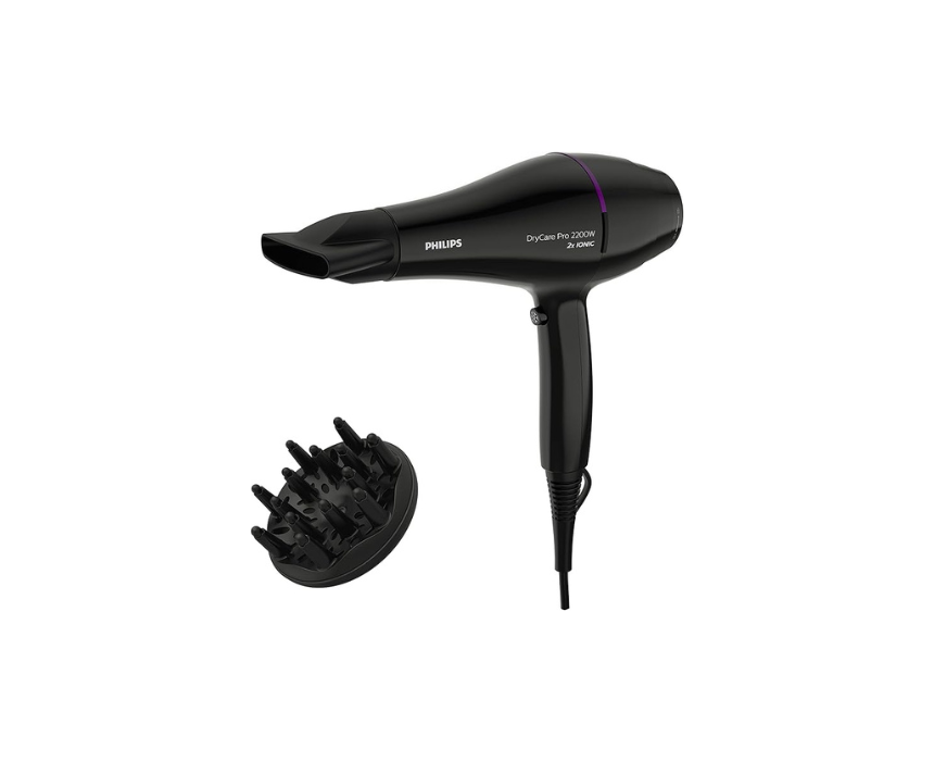 his 2200W hair dryer delivers fast, high-performance drying with a powerful AC motor and six heat and speed settings for total control. Its ThermoProtect temperature setting prevents overheating while dual ion technology reduces frizz and boosts shine. Ideal for achieving smooth, salon-quality results every day.