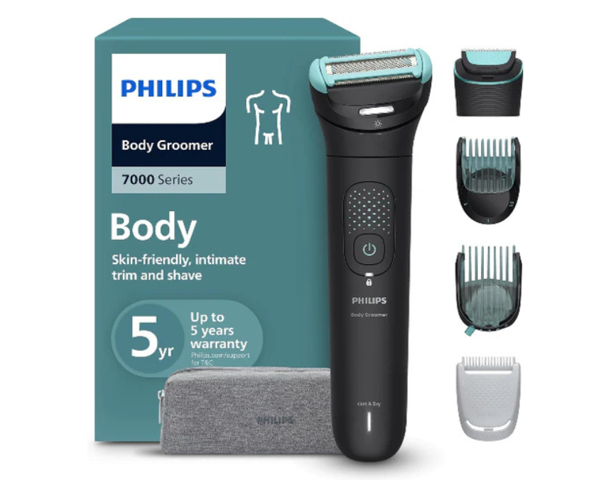 The Philips BG7470/15 Body Groomer Series 7000 features a dual-sided design, 120 minutes of runtime, and a 360-degree flex head for precise grooming of hard-to-reach areas. Its ergonomic design ensures comfortable handling while trimming face, body, and sensitive areas with ease. For best results, it is styled by using gentle, even strokes and the flex head to follow body contours for a smooth, well-groomed finish.