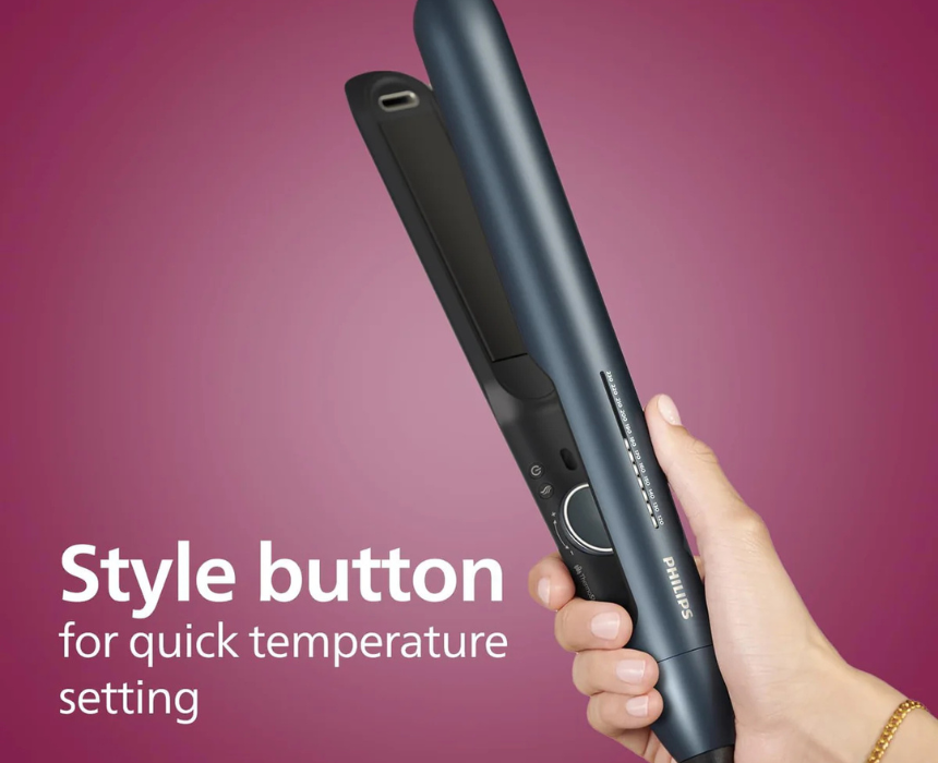 The Philips BHS732/03 7000 Series hair straightener features argan oil-infused plates for smooth, shiny, and healthy-looking hair while styling. Its fast-heating technology and ergonomic design allow for precise and effortless straightening. Style it by using it to create sleek, straight looks or gentle waves for everyday or special occasions.