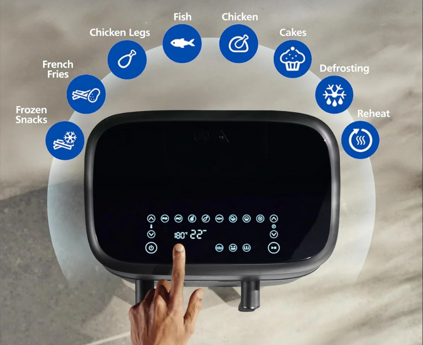 The Philips Dual Basket AirFryer 3000 Series features two separate frying baskets, allowing you to cook different foods simultaneously with little to no oil. Its advanced air technology ensures crispy results while reducing fat, making it ideal for healthier meals. Perfect for busy kitchens, it combines convenience, speed, and versatility for everyday cooking.