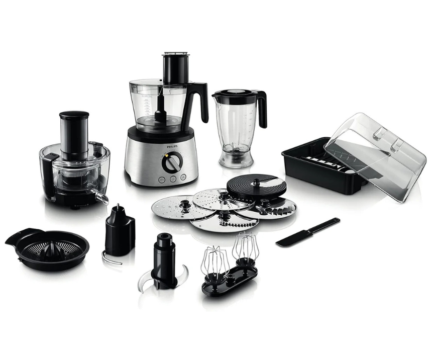 The Philips HR7778/01 7000 Series food processor features a powerful 1300W motor and a 3.4L bowl for effortless chopping, blending, and mixing of large quantities. Its versatile design includes multiple attachments for slicing, shredding, and kneading, making meal preparation quick and convenient. Style it by keeping it on the countertop for easy access or storing it neatly when not in use.