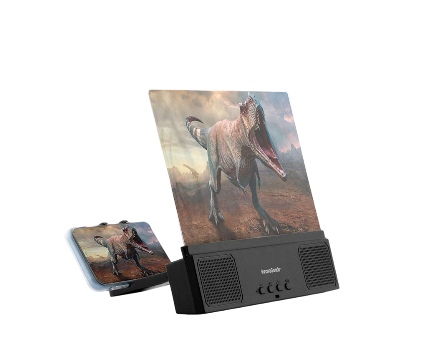The InnovaGoods Mobile Phone Screen Amplifier with Speaker Mobimax enlarges mobile phone images for a clearer, more enjoyable viewing of videos, films, series, photos, and videocalls. Its 12″ acrylic screen provides 3x magnification, while the built-in speaker, Bluetooth 5.0, and adjustable volume make hands-free entertainment easy. Lightweight, rechargeable, and portable, it includes an adjustable mobile holder and USB charging cable, perfect for home, travel, or children’s entertainment.