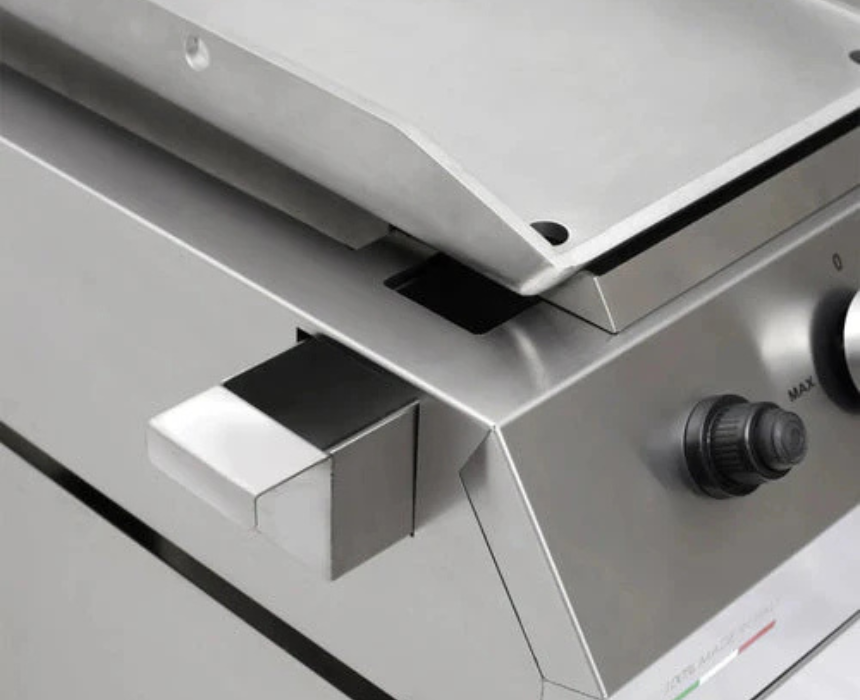 The Pianeta Grill Fry Top 250 Compact Gas BBQ is designed for efficient, high-heat cooking in smaller outdoor or built-in kitchen spaces. With a durable construction and space-saving footprint, it delivers reliable gas performance and can be styled as a sleek, minimalist feature alongside stainless steel or stone outdoor cabinetry.