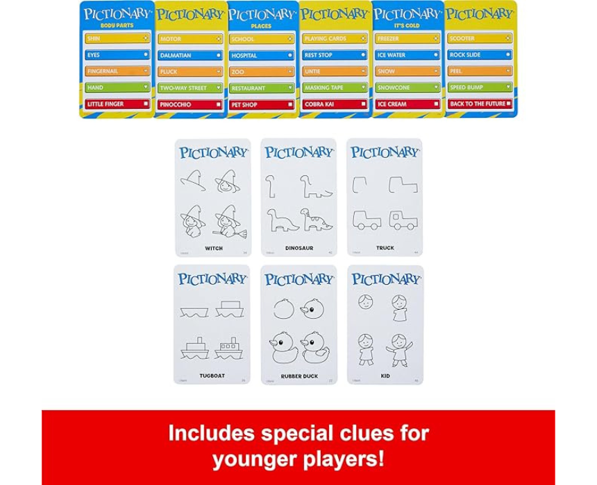 Pictionary offers a fun and interactive drawing game that encourages creativity and quick thinking among players of all ages. Designed for group play, it challenges participants to illustrate and guess words, fostering teamwork and imagination. Ideal for game nights or casual gatherings, it can be enjoyed at home or on the go for hours of engaging entertainment.