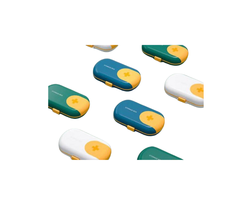 This blue and yellow pill box features 4 separate compartments, making it easy to store and organize your pills. Compact and portable, it’s perfect for daily medication management at home or on the go.