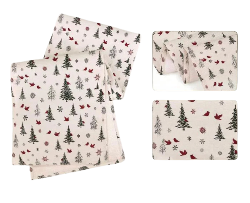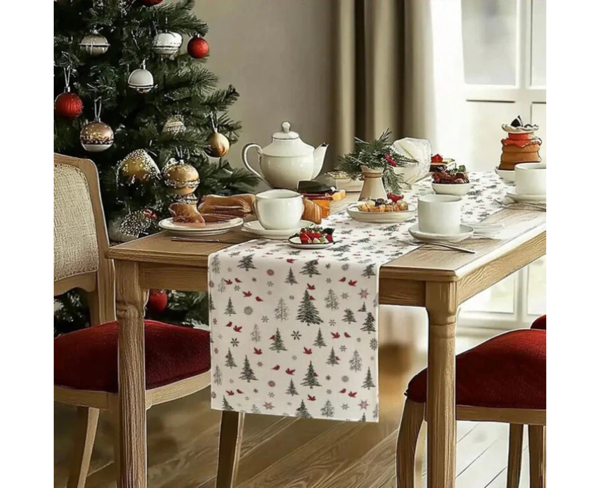 Elevate holiday dining with this Christmas Pine Tree Table Runner, crafted from premium woven polyester. Featuring pine trees, holly berries, and a “Merry Christmas” greeting, it is heat- and fade-resistant, machine washable, and perfect for protecting tables while adding festive charm. Ideal for dining tables, coffee tables, or buffet setups, it creates a cozy holiday centerpiece for family meals, parties, or gift-worthy décor.