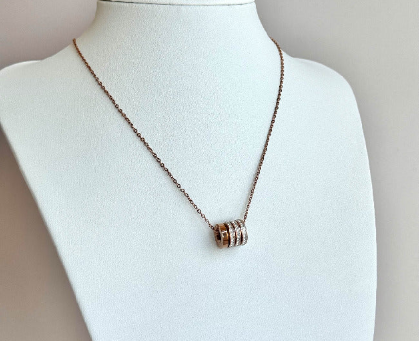 This pink necklace features a soft, elegant design that adds a subtle pop of color to any jewelry collection. Designed for everyday wear, it can be styled alone for a delicate statement or layered with other necklaces for a trendy, modern look. Its versatile aesthetic complements both casual outfits and more dressed up ensembles effortlessly