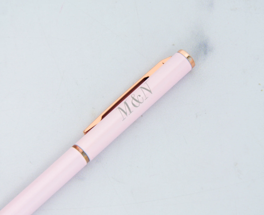 The Pink Pen is a stylish writing essential designed to enhance your daily journaling or professional tasks with its smooth black ink performance. This sleek accessory comes with an optional presentation box for a thoughtful touch and offers versatile ink options as black or blue refills can be purchased separately to suit your needs. To style this charming piece, pair it with a floral desk planner for a soft feminine look or tuck it into a rose gold pencil case to maintain a coordinated and chic office aesthetic.