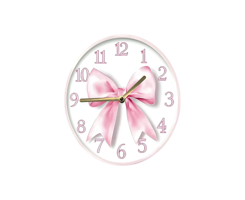This kids wall clock features a pink ribbon themed design with a 3D look created through high-definition 2D printing. Made from durable MDF and measuring 33 cm in diameter, it includes a silent mechanism for quiet everyday use. Ideal for children rooms, it adds a soft decorative touch while helping kids learn to tell time.