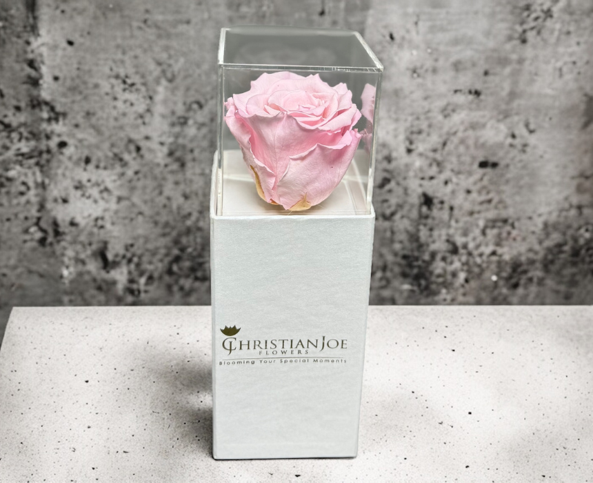 The Pink Rose Signature Box features a natural light pink eternal rose, elegantly presented in a signature box with a ribbon and gift bag. This long-lasting rose maintains its color, texture, and shape for up to 5 years, making it a timeless and romantic gift. Style it as a centerpiece, desk décor, or thoughtful keepsake for someone special.