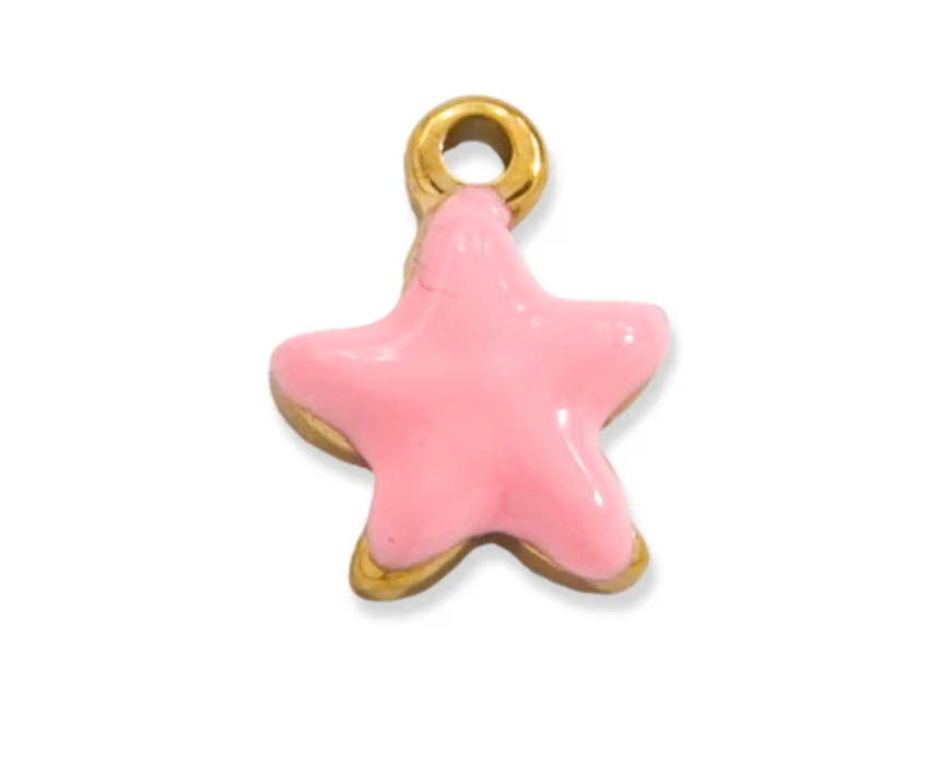 The Pink Star Charm features a delicate star design highlighted with a soft pink finish, offering a playful yet elegant accent for any charm bracelet or necklace. Crafted for durability and lasting shine, it brings a touch of color and personality to everyday or special occasion looks. Wear it alone for a subtle statement or mix it with other charms to create a unique, layered style.