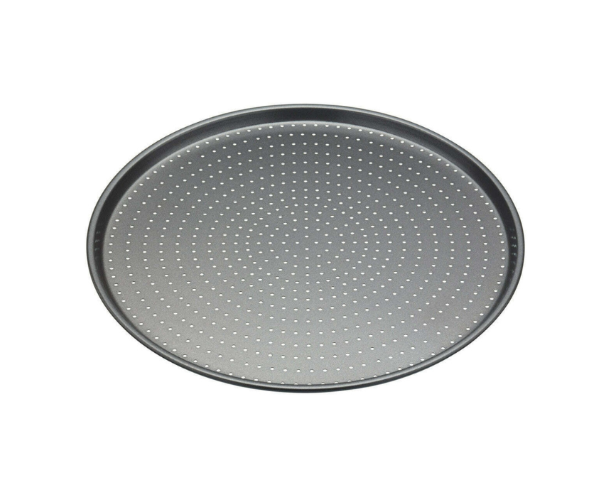 This 32 cm non-stick pizza pan from the MasterClass Crusty Bake collection ensures a perfectly crispy base for fresh or frozen pizzas, bruschetta, flatbreads, and oven chips. Made from durable steel with perforated holes and Quantum 2 non-stick coating, it is oven, dishwasher, fridge, and freezer safe, PFOA, PTFE, and BPA free. Its sleek black design is practical for everyday use and easy to style in any kitchen setup.