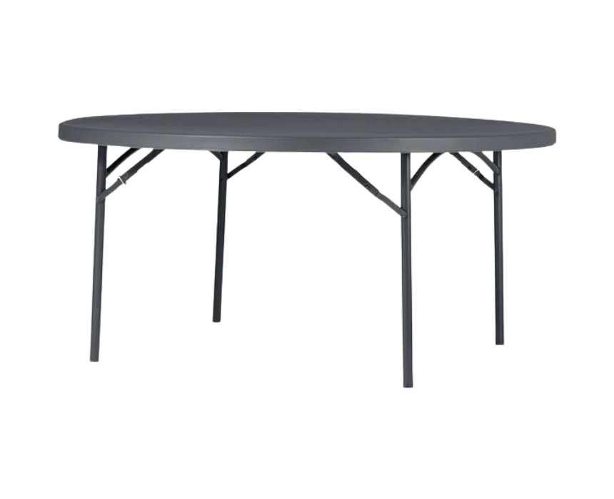 This round folding table measures Ø122 cm and comfortably seats up to six people, making it ideal for banquets and celebrations. Made from high-density polyethylene with a spray-painted steel frame, it features an ergonomic design with no crossbars, integrated leg caps, and UV and water-resistant protection. Lightweight yet durable, it can be easily rolled for transport and supports up to 340 kg.