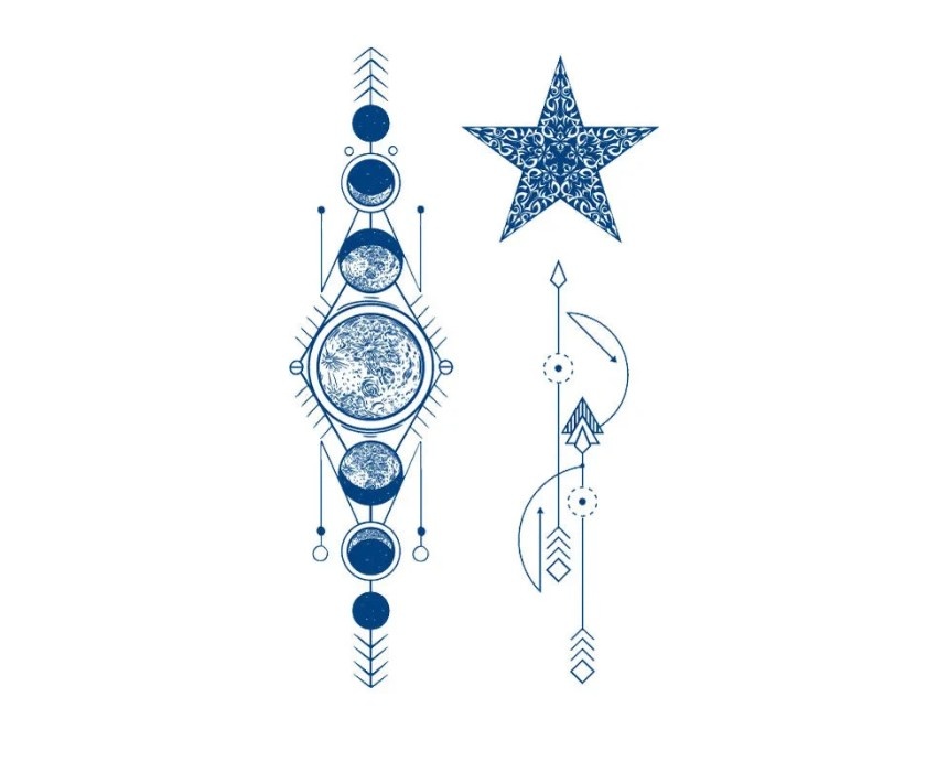Planets and Stars Jagua Tattoo Set offers a temporary body art design inspired by celestial themes, featuring detailed planets and star motifs created with natural jagua ink for a deep, skin-like stain. It is designed for easy application on areas such as wrists, arms, shoulders, or collarbone to create a subtle cosmic look. Ideal for styling layered or minimalist outfits, it enhances personal expression for festivals, casual wear, or special occasions.