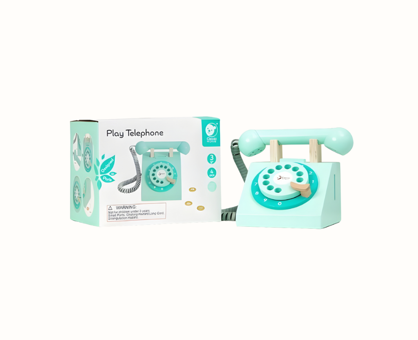 Designed for children aged 3 and up, the Classic World Vintage Telephone Toy brings timeless imaginative play to life. With a working spin dial and coins, this charming wooden phone encourages social communication, creativity, and role play as children enjoy making important calls in their pretend world.