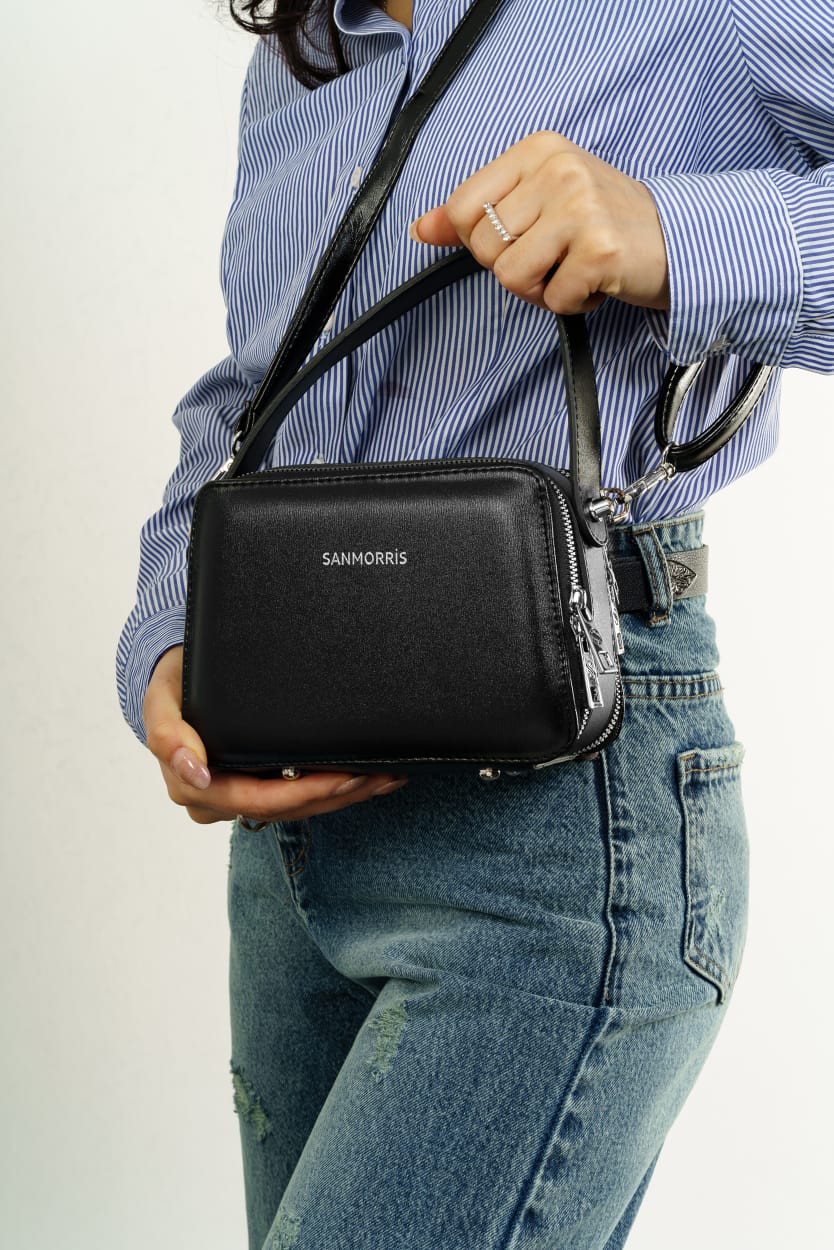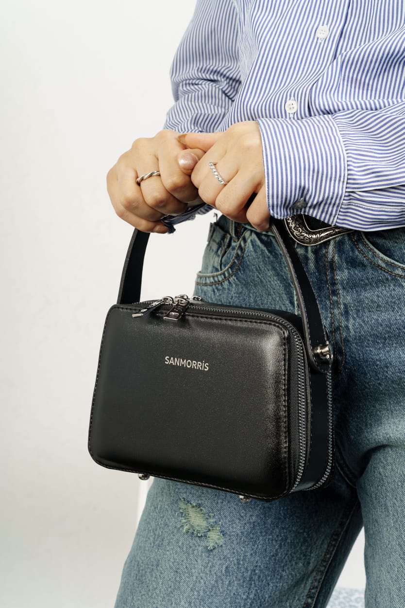 The Pluméa Handbag is a compact women’s hand and shoulder bag ideal for casual everyday use. Measuring 19×14×7 cm, it provides just enough space for essentials while featuring a sleek black leather design. Stylish and practical, Pluméa is perfect for daily outings.