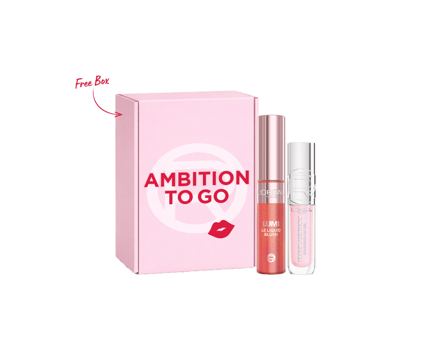 L’Oréal Paris Glow + Plump Duo combines Lumi Blush and Plump Ambition Lip Oil for a fresh, radiant look. The lightweight liquid blush delivers a buildable flush with a natural dewy finish, while the hydrating lip oil, infused with hyaluronic acid and peptides, plumps and nourishes lips with glossy shine. Together, they create a luminous complexion and fuller lips in one effortless step, perfect for everyday wear and all skin types.