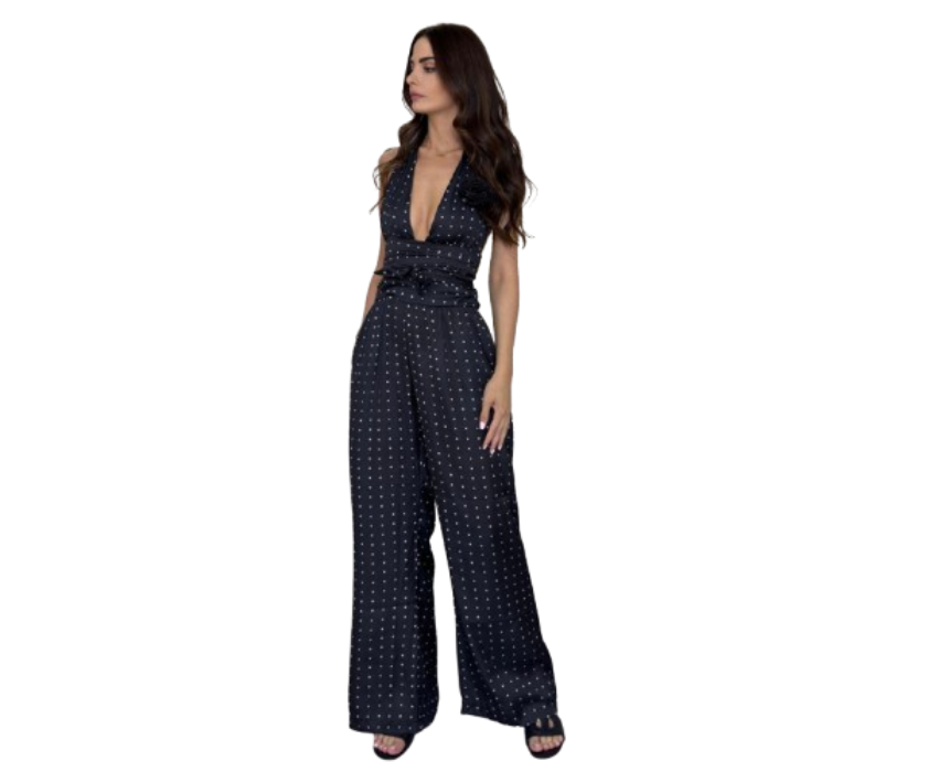 This women’s jumpsuit is crafted from premium soft touch fabric with a bold polka dot pattern that delivers a polished, eye catching look. Designed for a flattering fit and comfortable wear, it moves easily while maintaining a refined silhouette. Style it with heels for an elevated outfit or flats for a chic daytime look.