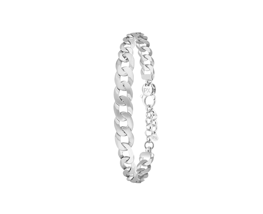 The Polo Exchange silver bracelet SI69-BC296-29_SAT_RH is crafted from high quality silver with a satin rhodium finish, offering a refined texture and a substantial weight of 13.64g. Designed for durability and everyday sophistication, it delivers a modern yet timeless look suitable for both casual and formal wear. Style it alone for a clean statement or pair it with a watch or layered silver accessories for a polished, contemporary appearance.