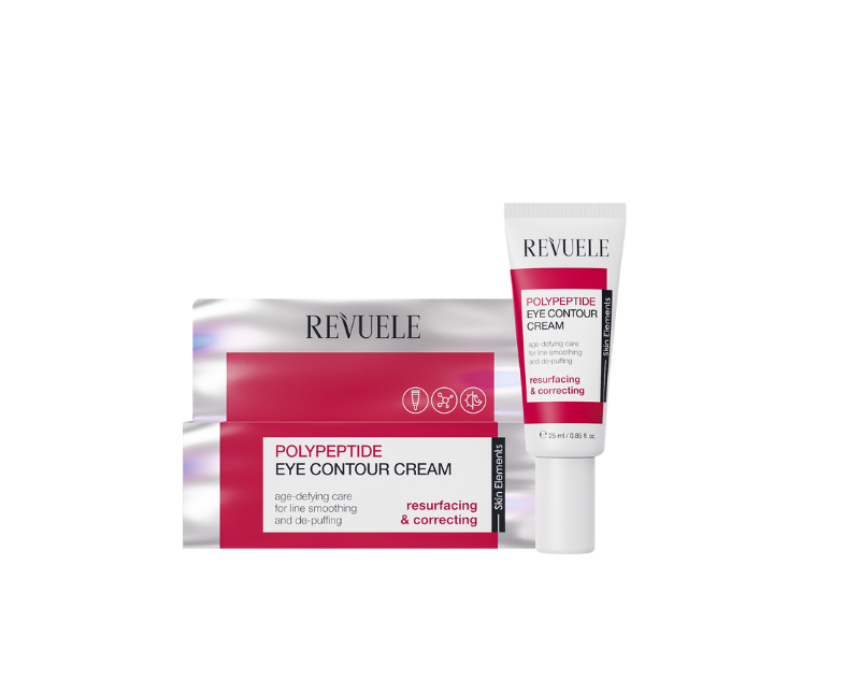REVUELE POLYPEPTIDE EYE CONTOUR CREAM is an advanced anti-aging eye cream designed to refine skin texture, reduce puffiness, and smooth fine lines. Formulated with multiple peptides and caffeine, it tones, lifts, and revitalizes the delicate eye area, promoting firmer, more elastic, and younger-looking skin.