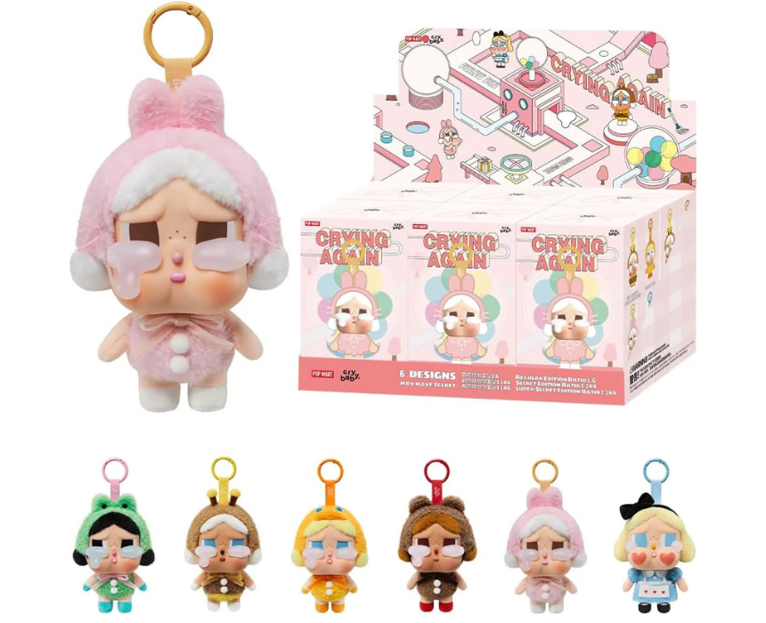The POP MART Crybaby Crying Again Series Vinyl Face Plush Blind Box features an adorable teary-eyed character in animal- and storybook-inspired outfits. Each authentic plush can be clipped to bags, keys, or displayed as a cute collectible, adding charm and emotion to your everyday accessories. Sold individually in surprise blind boxes for fans of POP MART collectibles.