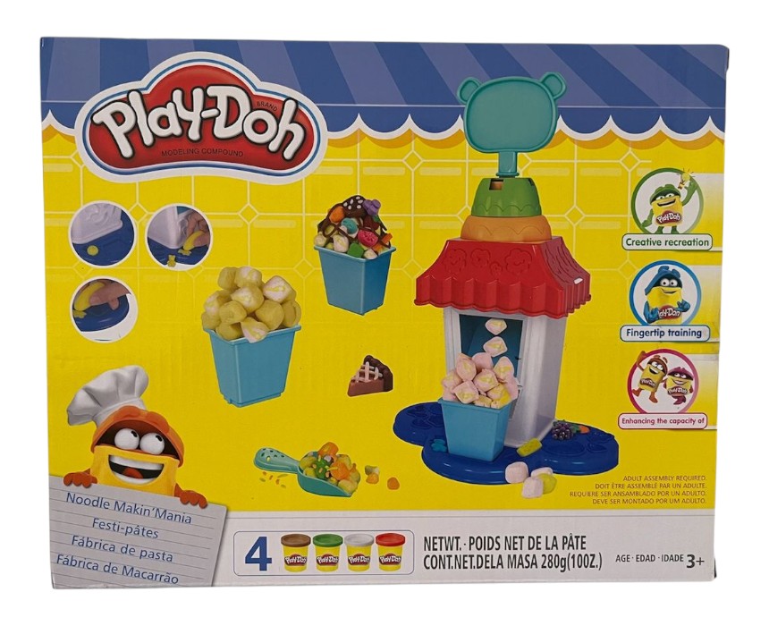 Create your own pretend cinema snacks with this 4-color playdough set. It features a popcorn maker machine and various buckets for a complete play experience. The set comes in a box measuring 28×22 cm. Suitable for ages 3+.