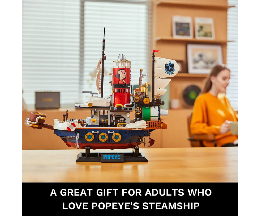 This themed building set invites fans to assemble a charming adventure scene featuring a classic steamship and playful character details. Designed with interlocking pieces for an enjoyable construction experience, it encourages creativity, focus, and imaginative storytelling. Once completed, the model can be displayed on a desk, shelf, or collector space to add a fun nautical inspired decorative touch.