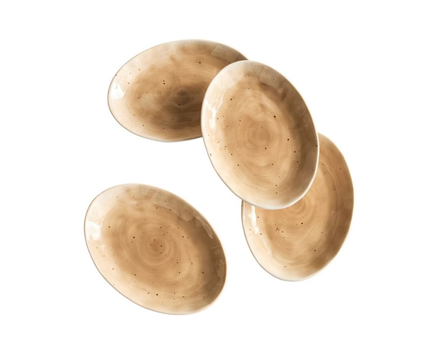 This porcelain side plate set measures 20 cm in length 14 cm in width and 2.7 cm in height offering a refined balance of durability and elegance. Perfect for serving appetizers salads or desserts it complements both casual and formal dining settings. Its classic design enhances any table arrangement with a sophisticated touch.