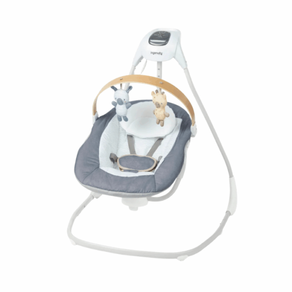 Designed for newborns, this portable baby swing seat provides a soothing and secure place for rest and relaxation with multi direction swinging and gentle vibration settings. It features adjustable recline positions, a removable head support for newborn comfort, and a rotating toy bar with soft toys to encourage early sensory engagement. With built in melodies, nature sounds, timer functions, and a compact foldable design, it is ideal for calming and entertaining baby at home or on the go from birth up to toddler age.