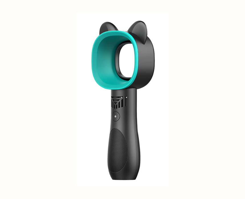This portable handheld fan features efficient power conversion and low noise operation, with a 1200mAh rechargeable battery that lasts 4.5 to 8 hours per charge. It offers three adjustable wind speeds for personal comfort and can be powered via USB from computers power banks or chargers. Slim, lightweight, and easy to carry, it is ideal for travel, reading, sports, or everyday use, and comes in blue or pink.