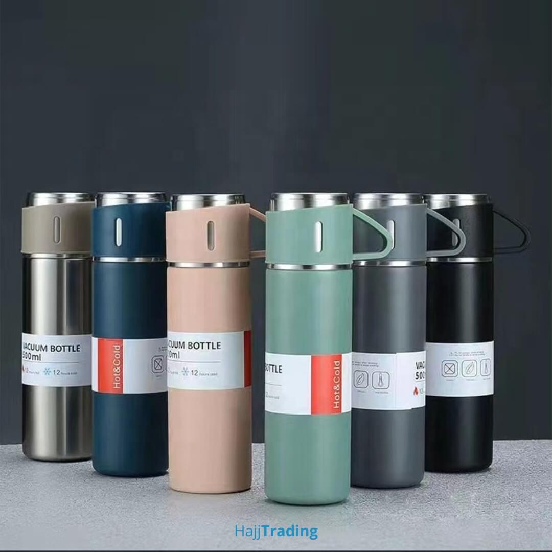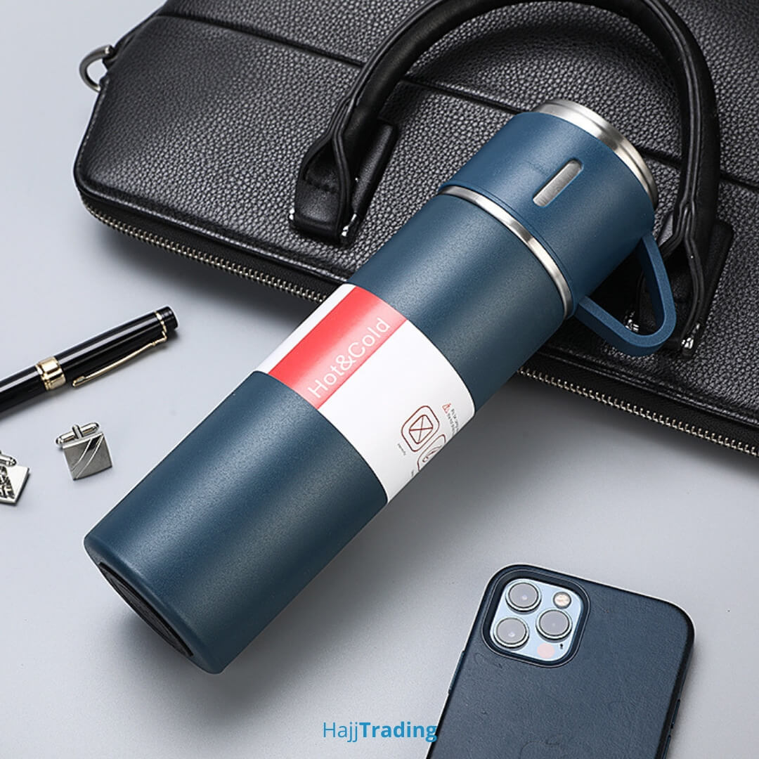 Stay hydrated with this sleek 500ml Portable Thermos Bottle. Crafted from high-quality stainless steel, it is designed to keep your drinks hot or cold for 8 to 12 hours. The leak-proof lid ensures a mess-free experience during travel, office commutes, or gym sessions. Available in Navy Blue, Gray, Green, Black, and Pink, its minimalist and professional design fits into any lifestyle. An eco-friendly, reusable choice to replace disposable bottles while maintaining temperature.