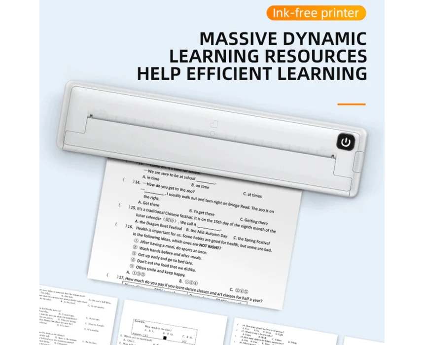 The Wireless Thermal Printer offers compact, ink-free printing for home, office, school, or travel use. With Bluetooth connectivity, A4 paper compatibility, a rechargeable battery, and low-noise operation, it delivers clean, clear prints quickly and effortlessly. Lightweight and portable, it is perfect for students, business travelers, and remote work setups.