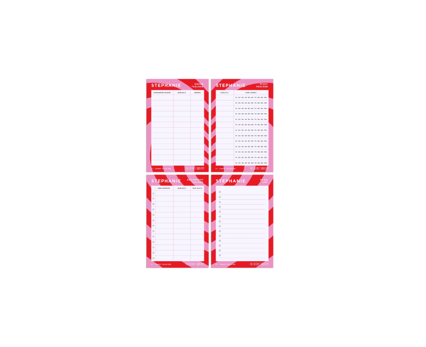 The Power Puffs Student Study Desk Planner from The Secret Society is a comprehensive organizational set featuring four A6 note pads with fifty three tear off sheets each to keep track of academic goals. This practical desk accessory allows students to efficiently manage daily tasks and habit tracking with high quality paper that can be easily removed once completed. To style this vibrant planner set, arrange the pads neatly alongside your laptop and colorful pens for an aesthetic study setup or pin the individual ripped sheets to a corkboard for a clear and motivating visual display of you
