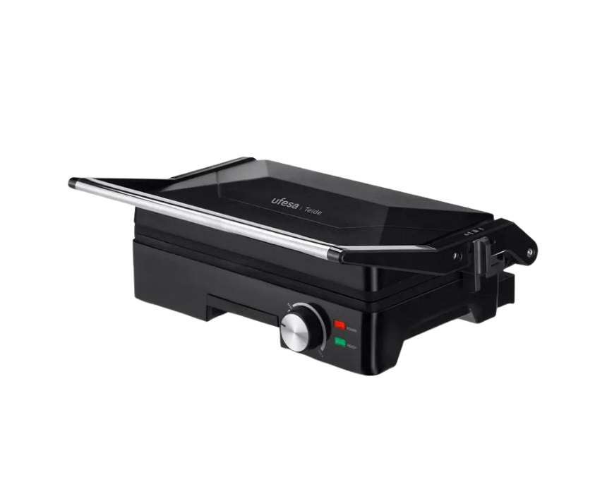 This 1600W electric grill offers adjustable temperature and height for perfectly cooked steaks, hamburgers, or chicken. Its 180º opening allows cooking with the top plate pressed for both-side grilling or fully open for larger batches. Non-stick plates with a drip tray and a cool-touch handle ensure easy cleanup, safe handling, and convenient everyday use.