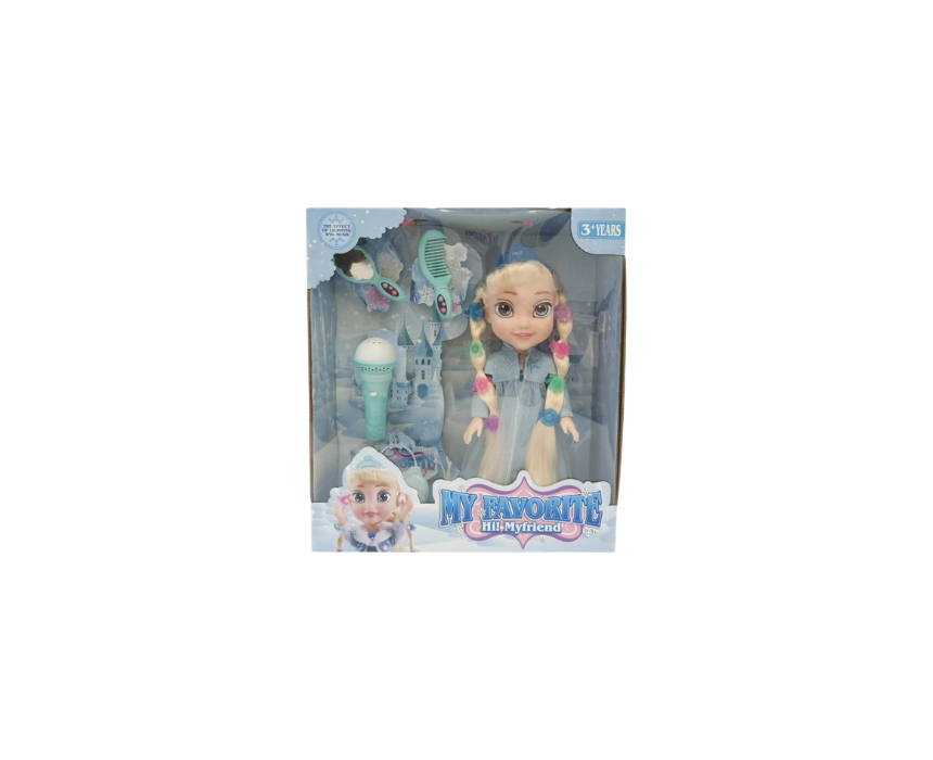 This princess-themed doll, inspired by Elsa from Frozen, sparks imaginative play and magical storytelling adventures. It includes fun accessories like a hairbrush and toy microphone, with select versions featuring lights and sounds for interactive excitement. Kids can style her shimmering hair with the brush and place the microphone in her hand to create their own royal performances.