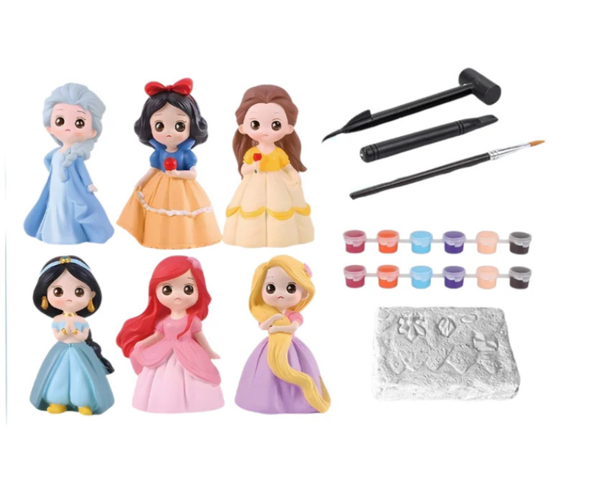 The DIY Princess Plaster Painting Set lets children paint and decorate blank plaster princess figures using the included paints and brush for a fun, hands on art activity. Designed for ages 6 and up, it encourages creativity, fine motor skills, and imaginative play. Style the finished princesses with vibrant colors and display them on a shelf or desk as charming personalized decorations.