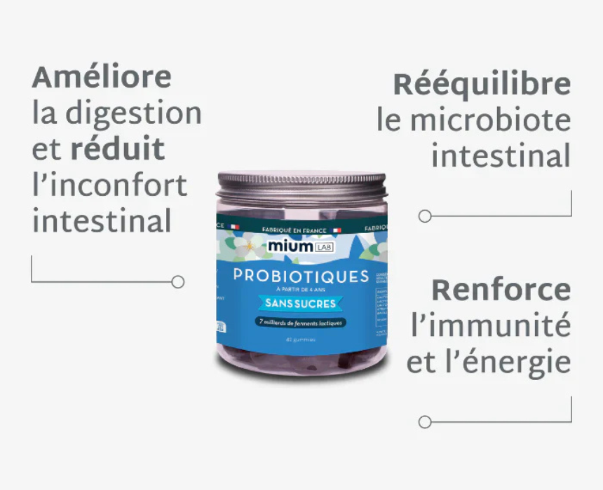 Mium Lab Probiotic Gummies contain 7 billion live cultures combined with vitamin B12 to support balanced gut microbiota and improve overall digestive comfort. Formulated with live and tyndallized probiotics, they help reduce bloating, support regular bowel function, enhance nutrient absorption, and promote immune health, making them ideal for daily digestive wellness or periods of intestinal imbalance.