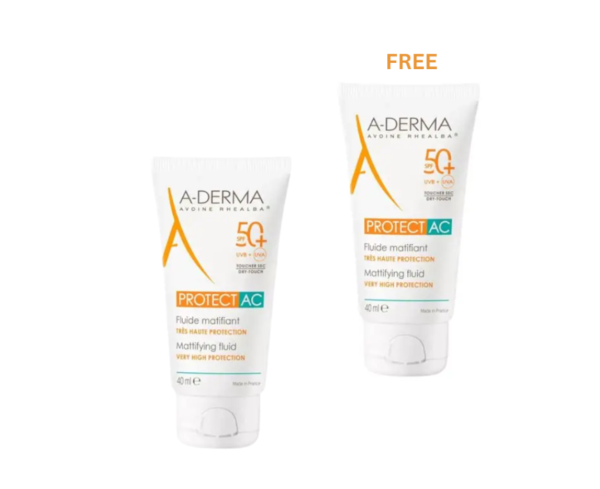 A-Derma Protect AC Mattifying Fluid SPF50+ is a high-protection sunscreen designed for oily and acne-prone skin, offering broad-spectrum UVA/UVB defense while controlling shine and excess sebum. Enriched with Rhealba® Oat Plantlet Oil and Barriestolide®, it strengthens the skin barrier and protects against environmental stress. Its lightweight, fast-absorbing texture leaves skin matte, comfortable, and well-protected throughout the day.
