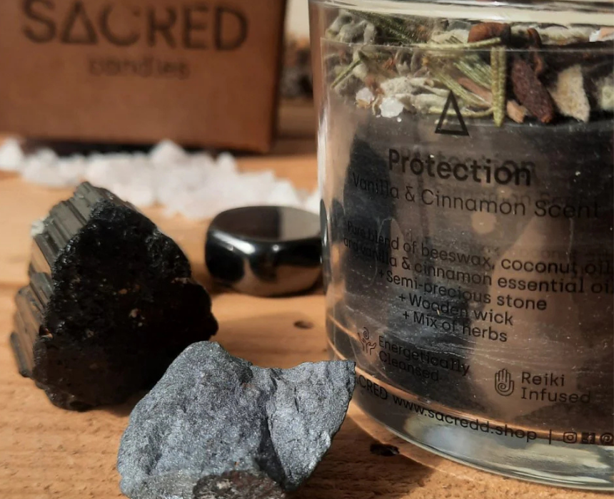 The Protection Ritual Candle is hand-poured with beeswax, coconut oil, and essential oils infused with the frequency of divine protection. Reiki cleansed and charged, it combines color, scent, crystals, and herbs to create a powerful shield of light and grounding energy. Light it during meditation, rituals, or self-care moments to invite safety, clarity, and peace into your space.