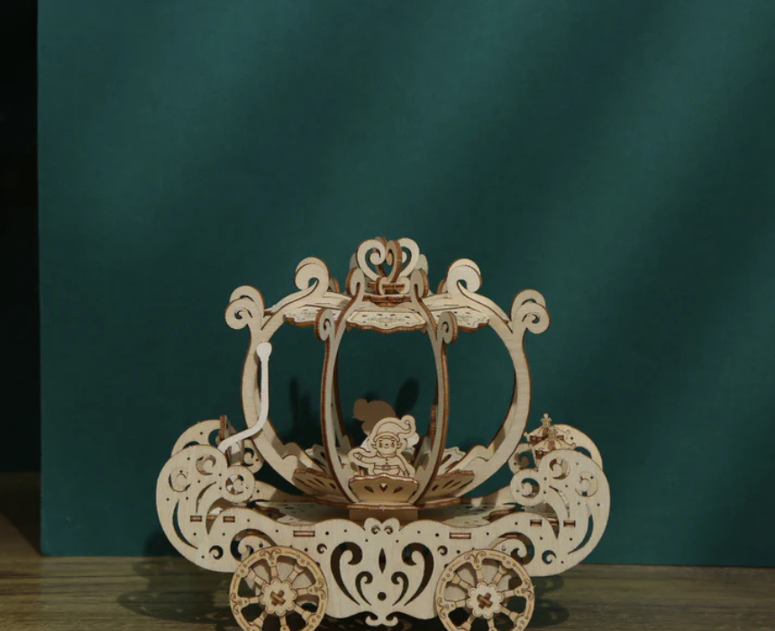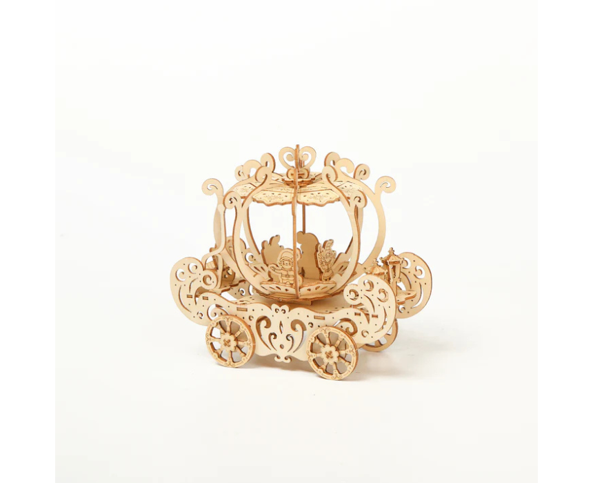 The Pumpkin Princess Carriage 3D Mechanical Wooden Puzzle Large is an enchanting precision cut wooden model that assembles into a fairytale inspired carriage with intricate mechanical details and moving elements. Designed for an immersive hands on build it showcases elegant curves and smooth motion once completed. Perfect for styling on a shelf dresser or display table it adds a whimsical decorative touch and makes a magical gift.