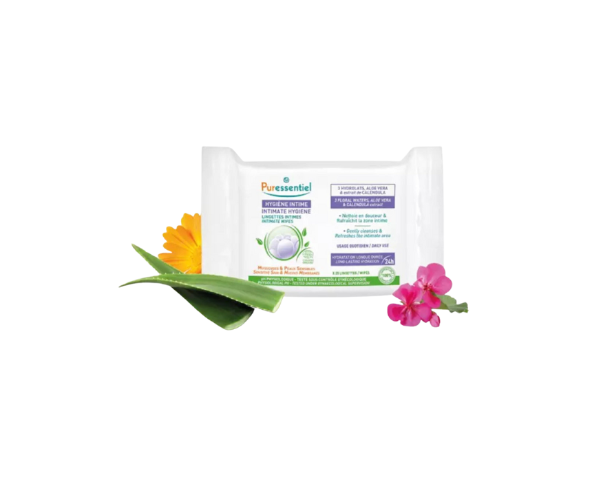 Keep sensitive areas fresh and clean with Puressentiel Intimate Wipes. Enriched with natural ingredients, they provide gentle hygiene and soothing care anytime, anywhere.