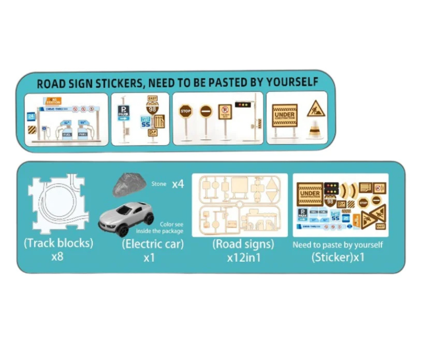 The Dinosaur Puzzle Track Toy Set lets kids build and customize their own track with a fun free-splicing design for endless layouts. It includes an electric die-cast metal car and supports creativity and hand-eye coordination for children ages 3 and up. It is best styled as a floor or tabletop playset and pairs well with a dinosaur or vehicle-themed play area.