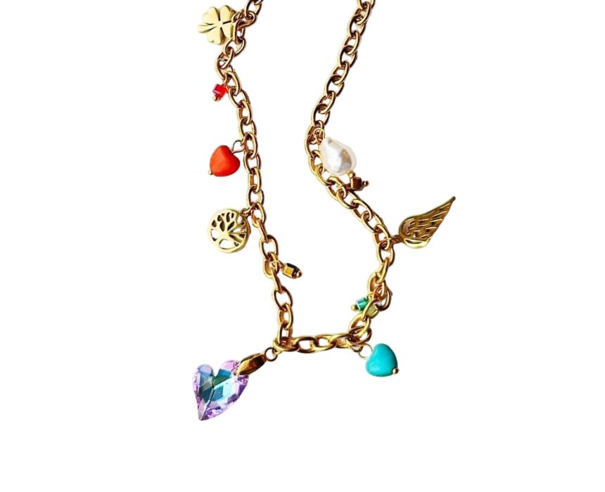 The Rainbow Charm Necklace features a vibrant 18K gold-plated stainless steel design, adorned with a colorful rainbow charm. Its playful and elegant look makes it perfect for brightening up any outfit, whether worn casually or for a special occasion. Pair it with a simple tee for an everyday pop of color, or wear it with a dress to add a cheerful, stylish touch to your evening look. This charming necklace is a must-have for those who love unique, eye-catching jewelry.