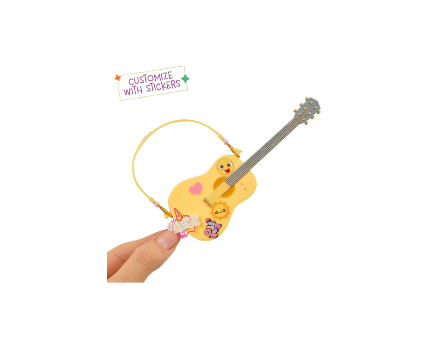 Rainbow High Junior High Sunny rock band fashion doll stands 9 inches tall and includes a yellow guitar, stickers for customization, a complete band outfit, and a comb. Styled head to toe in her signature yellow with long brushable hair, glass eyes, and articulated joints, she is easy to pose for performances or style for colorful display and imaginative play.
